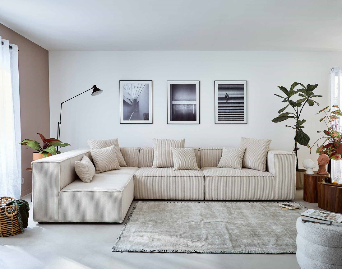 Colombine - canapé modulable d'angle gauche - 6 places - en velours côtelé