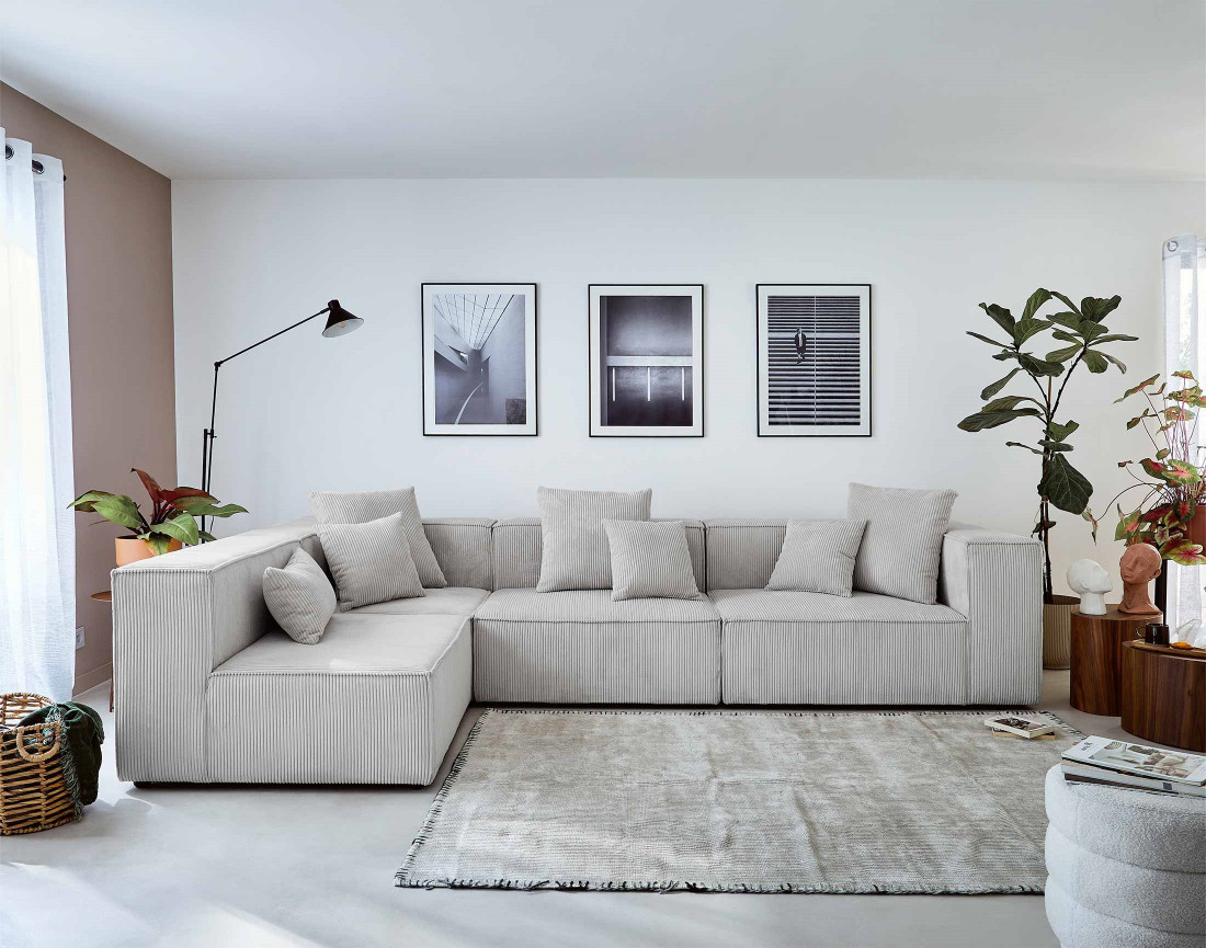 • Canapé modulable d'angle gauche 6 places en velours côtelé Colombine