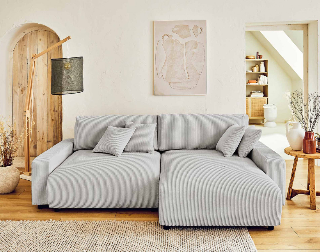 • Canapé d'angle réversible convertible avec coffre 4 places en velours côtelé Pivoine