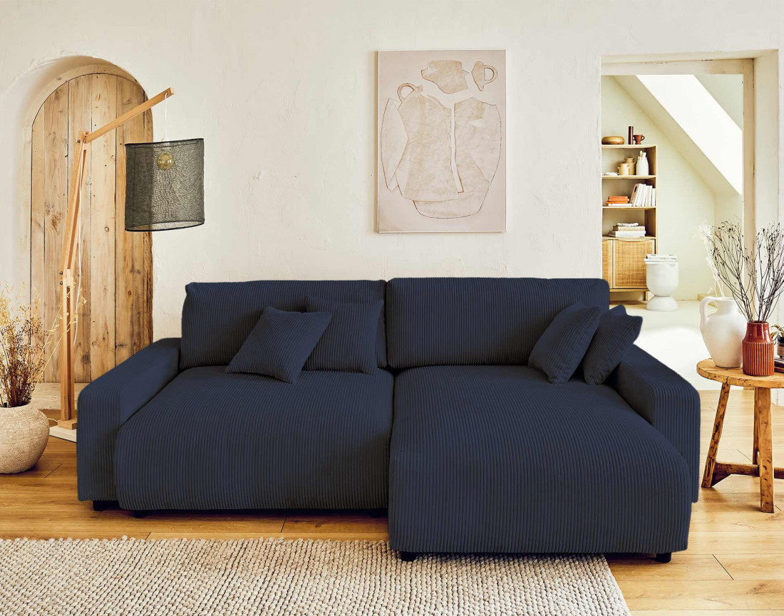 Pivoine - canapé d'angle réversible - 4 places - convertible avec coffre - en velours côtelé