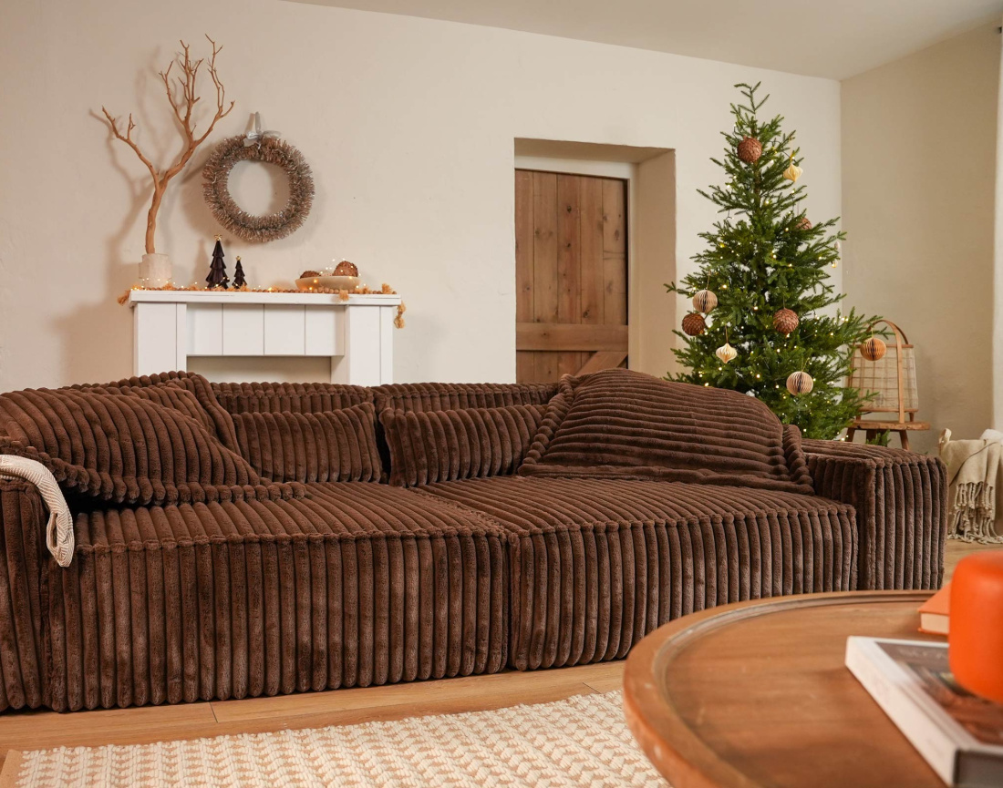 Son revêtement en fausse fourrure côtelée ultra-douce est parfait pour créer une ambiance cocooning dans votre intérieur. Vous pouvez vous reposer autant que vous le souhaitez ; ce meuble ne craint pas l’affaissement avec le temps ! Richie est également un canapé pratique. Les coussins de dossier et les coussins décoratifs sont déhoussables, ce qui facilite leur entretien au quotidien. Vous pourrez ainsi préserver facilement son aspect neuf et sa douceur incomparable. Le canapé Richie est fabriqué en Europe et répond à des normes strictes. Il est disponible en huit coloris pour matcher avec votre décoration préférée. Craquez pour le vert, marron, taupe, gris clair, gris foncé, beige, bleu ardoise ou le rouille.